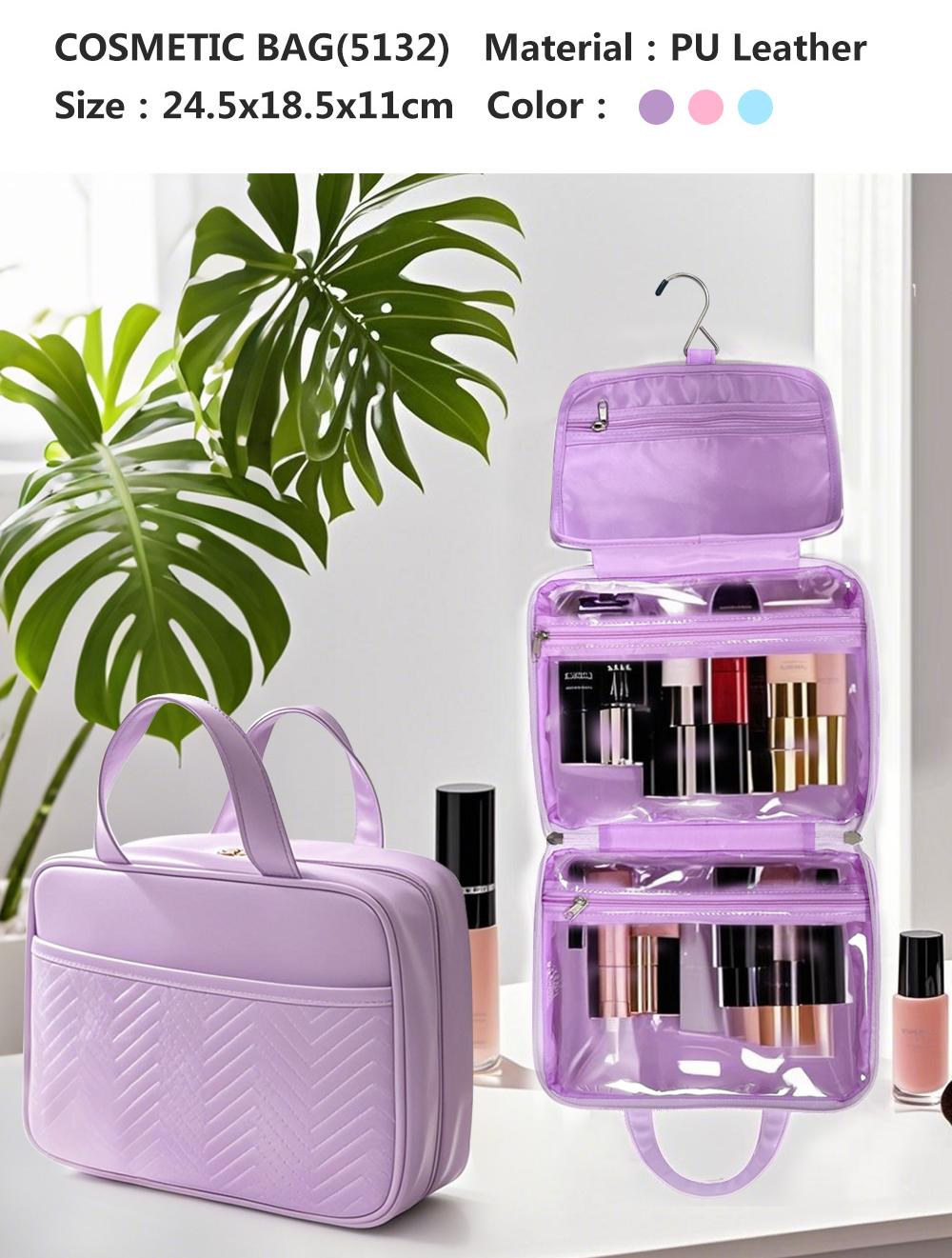 In addition to its signature purple, this Elegant PU Leather Cosmetic Bag comes in several stylish color options. Consequently, you can choose a tone that aligns perfectly with your personal or brand aesthetic.
