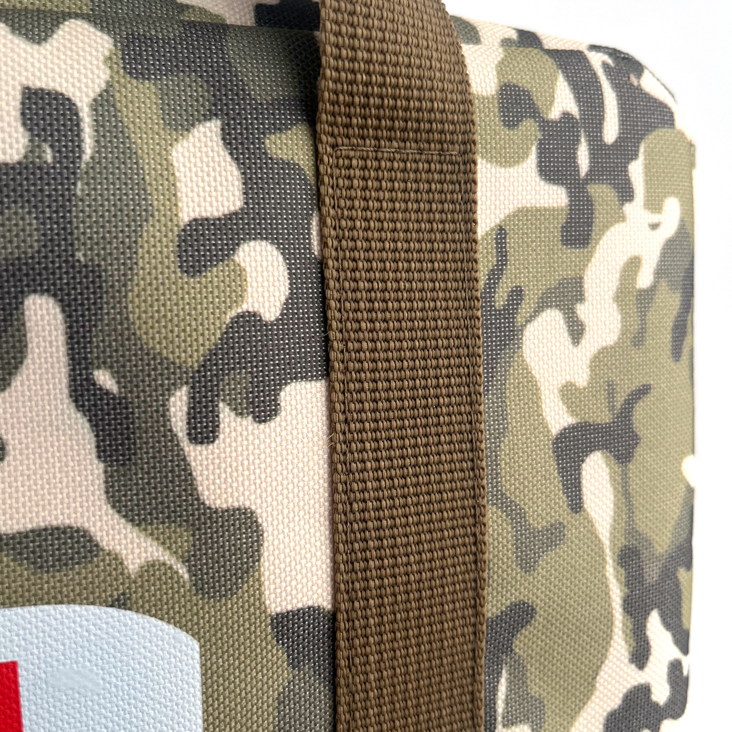 To enhance quick identification, the Camouflage First Aid Bag displays a bold red cross on a white background at the front. In critical situations, this internationally recognized symbol helps save valuable time by immediately signaling its emergency purpose.