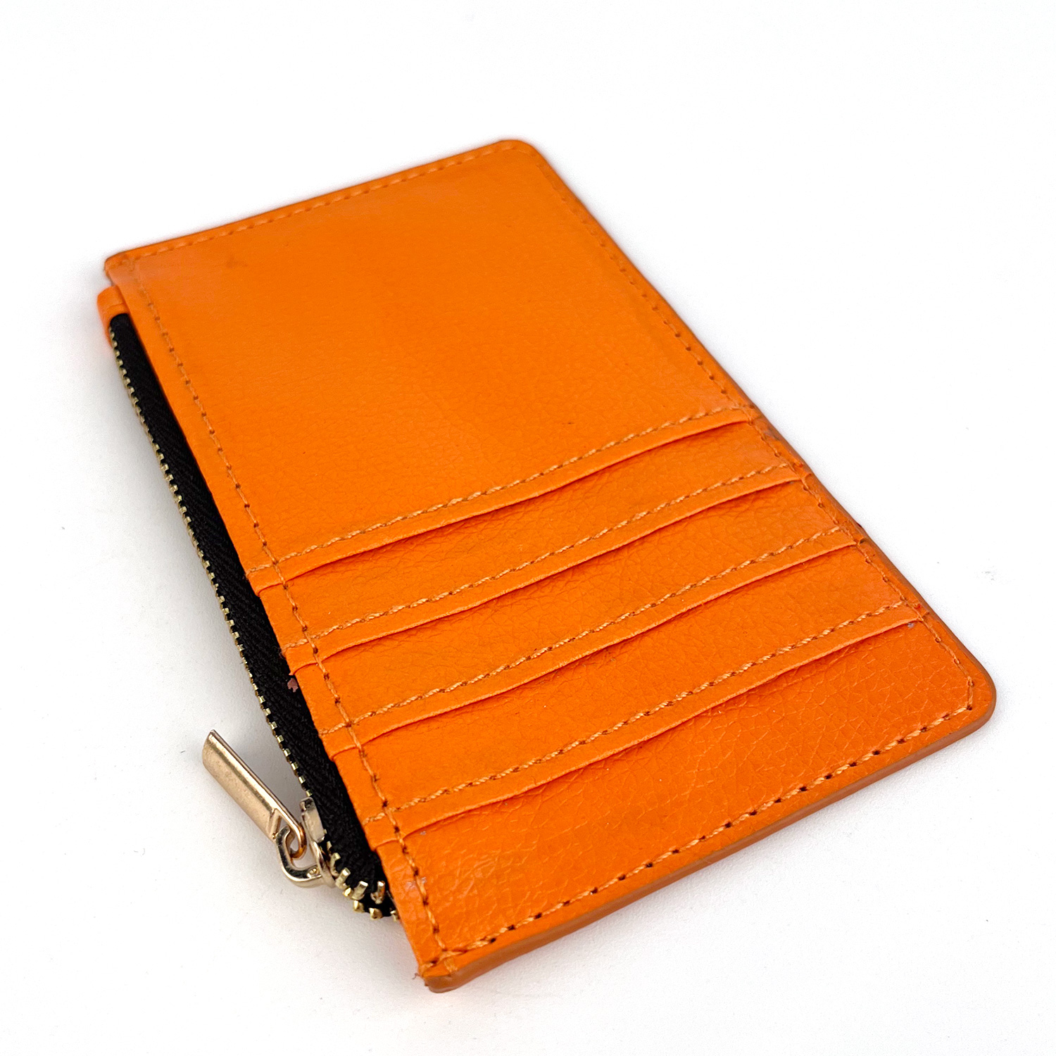 This compact card holder includes multiple internal slots, ideal for storing ID cards, bank cards, or membership cards. On the opposite side, a smooth black zipper opens to a small compartment, perfect for coins, cash, or receipts, enhancing everyday convenience.