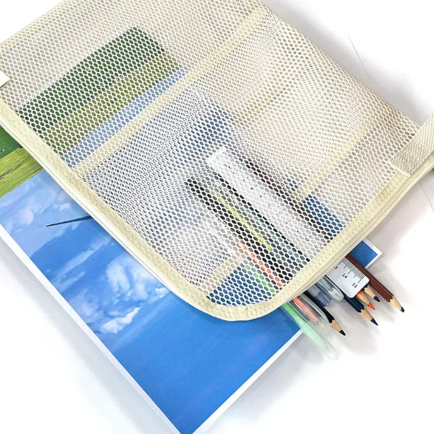 A4 Large Mesh Zipper Storage Bag – Ideal for Office, Study, and Travel