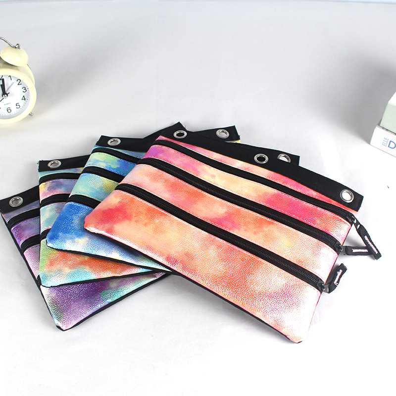 This binder pouch made of polyester is very attractive. Tough texture, wear-resistant wrinkle resistant, always in shape. Unique three-zipper design, opening from different directions, flexible division of space, office supplies, clothing sundry can be orderly storage. Smudging process is a unique, color such as flowing picture, blend penetration, or light as spring morning, or gorgeous like summer sunset, unique personality. Back it, practical and fashion, walking the streets, exposure to the party, easy to catch the eye, show the owner’s unique taste, perfect for multiple scenes, people can not put down.